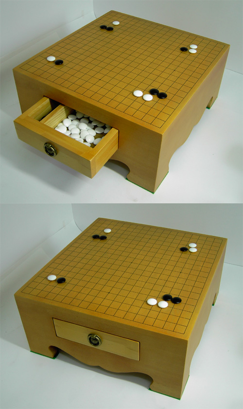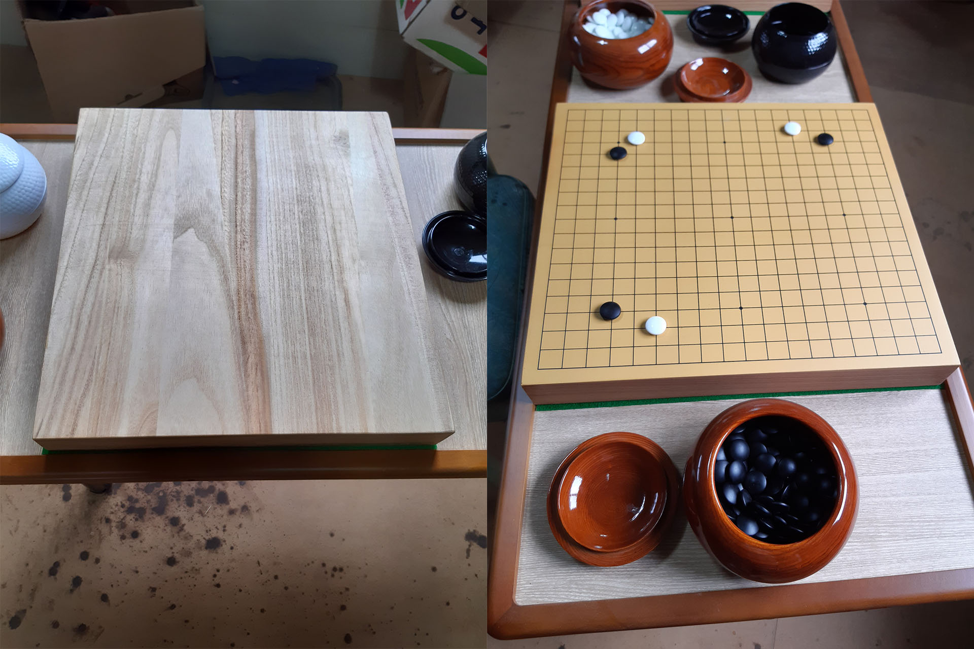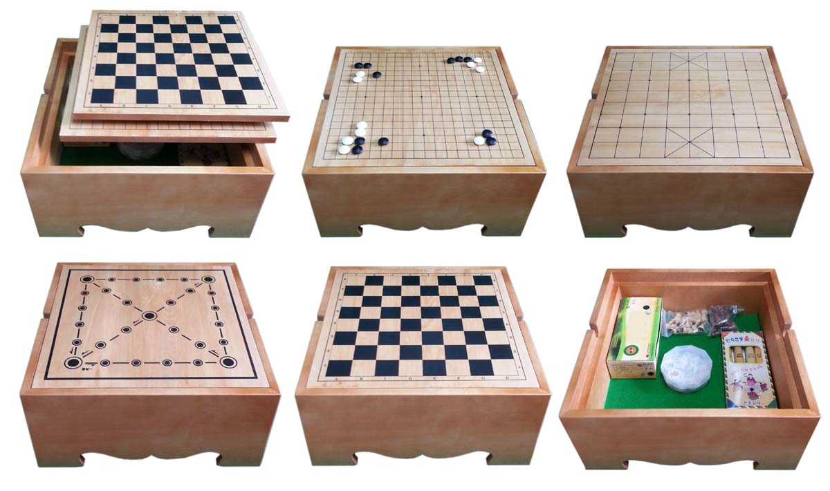 특징 : 2013년 8월 1일부로 특허등록이 된 이 바둑판은 40년 경력의 기술자가 특별 제작한 제품으로 바둑판, 장기판, 체스판, 윷판을 하나로 모았습니다. 바둑을 두지 않을 때는 자리만 차지하던 바둑판과는 달리 다양한 놀이가 가능해 바둑을 즐기지 않는 가족과도 함께 즐길 수 있어 활용도가 높습니다.